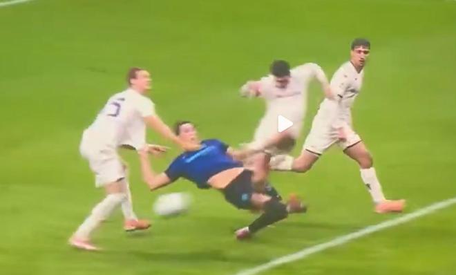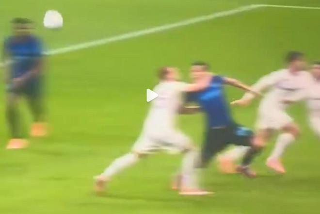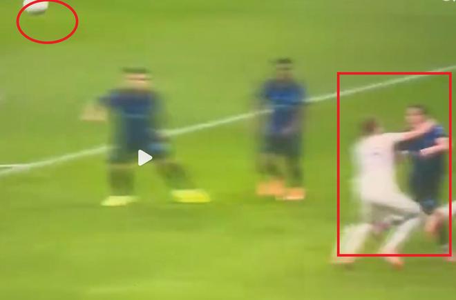 直到皮奧到底之前,對方球員的雙手依然保持著摁住皮奧的姿態,甚至沒有時間雙手上揚做無辜狀;