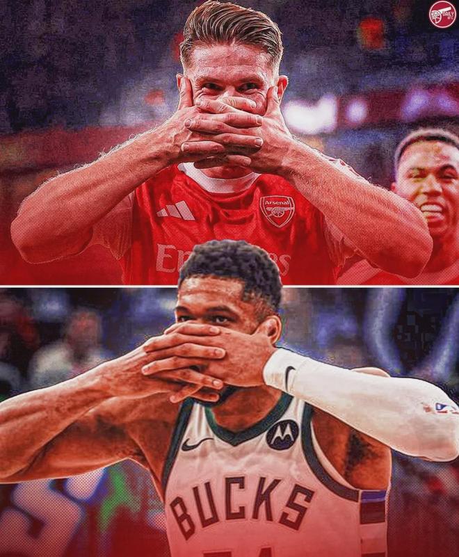 在雄鹿戰(zhàn)勝尼克斯的比賽中,阿森納球迷、“字母哥”阿德托昆博做出了哲凱賴什的經(jīng)典慶祝動作。