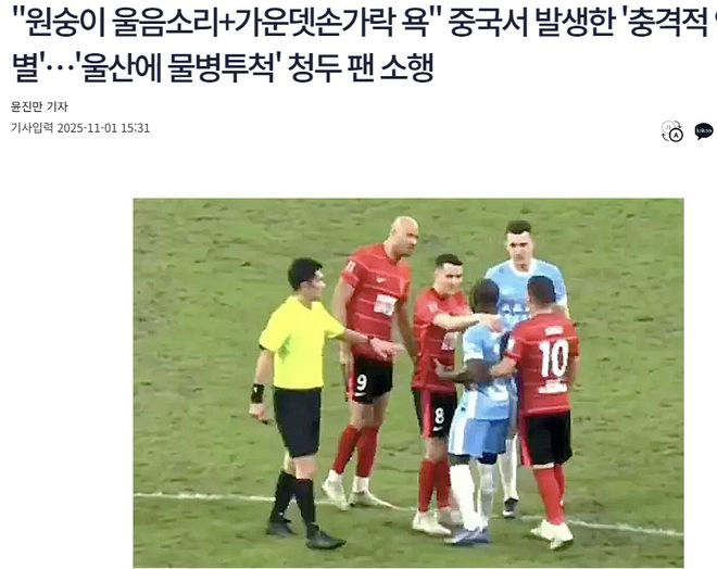 “在此之前,成都蓉城球迷在和蔚山HD的比賽中,向蔚山球員投擲水瓶,而導致成都蓉城被亞足聯罰款3000美元。本賽季,中超聯賽飽受球迷不文明行為的困擾,球迷不僅在線上形成口角,甚至會演變成線下的沖突,對中國足球文化的擔憂日益加劇。目前,中國足球已經出現了各種問題,此時球迷也不斷添亂,可見他們的文明意識和文化水平都落后于時代?!痹撁襟w總結稱。